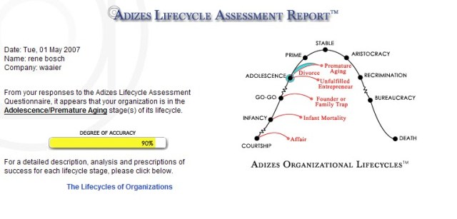 Volgens het lifecycle assessment dat ik vanmiddag onderging, kwam naar voren dat de school, de organisatie in ‘ its prime’ zit. We zijn er in de afgelopen 3 jaar in geslaagd weerstand te bieden tegen de valkuilen van de adolescentie periode. We zitten nu in de bloei periode.