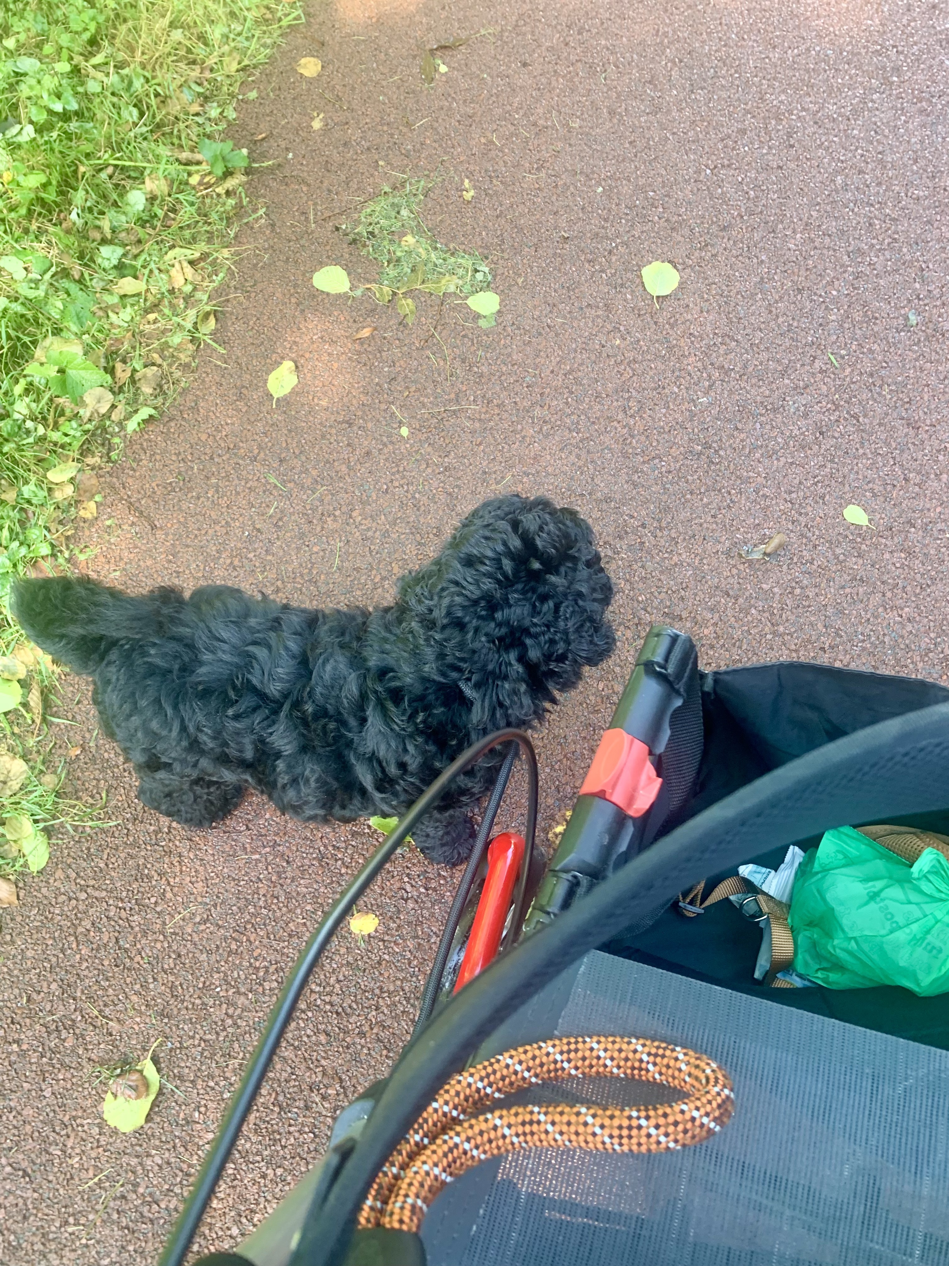 Op de wandeling gebeurde het weer: precies op het smalste stuk van het pad kwam een tegenligger aan. Ik zei: “Bram, naast!” Karin zei: “Bram, hier!” En Bram ging pontificaal midden op het pad staan, zodat niemand erlangs kon. De tegenligger keek alsof wij een toneelstuk opvoerden, een experiment van de toneelschool dat mislukte en toch applaus verdiende.